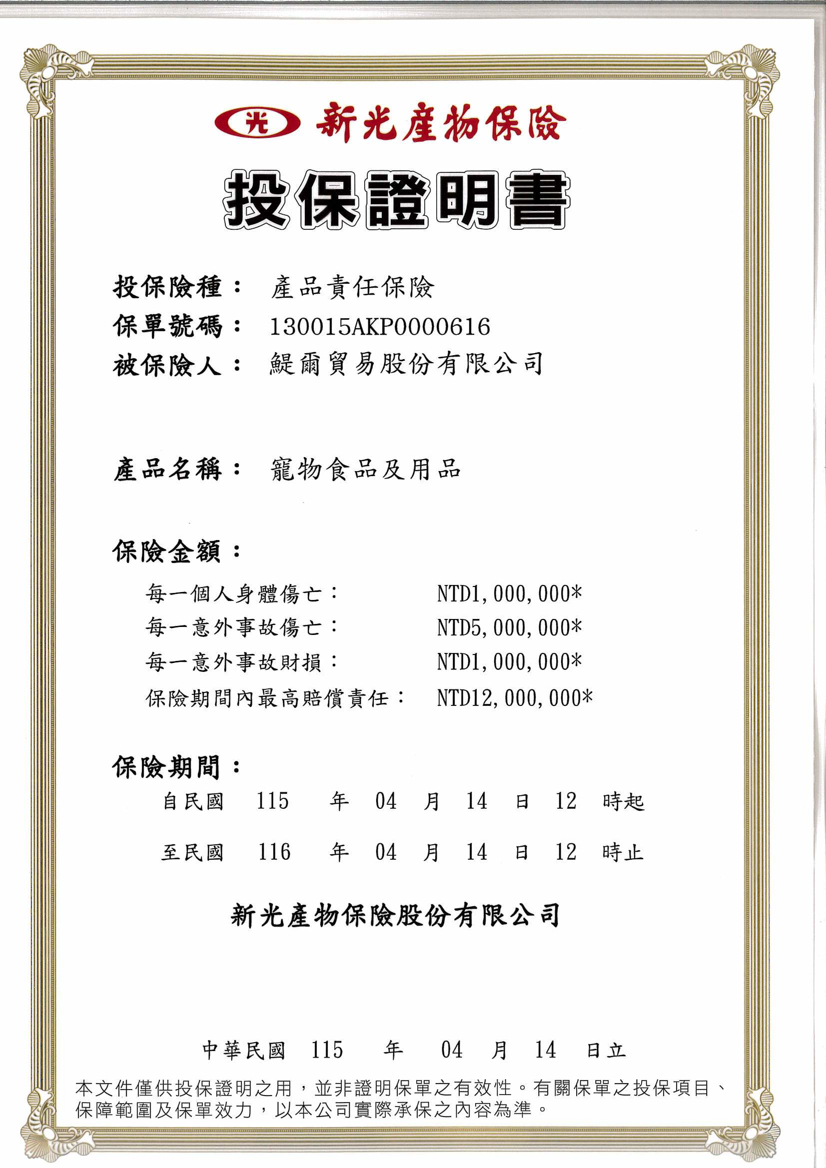 商品皆已投保產品責任險
