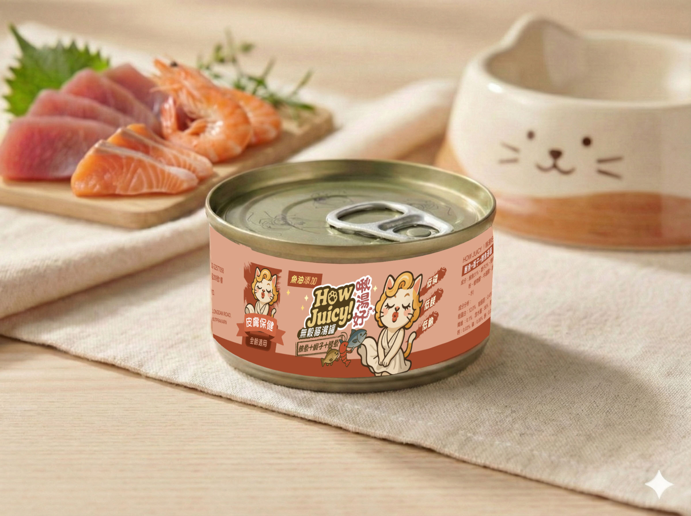 HOW JUICY 啾湯好|鮪魚+蝦子+鱒魚湯罐(皮膚保健)80g |極致補水 高適口性|貓咪補水神器