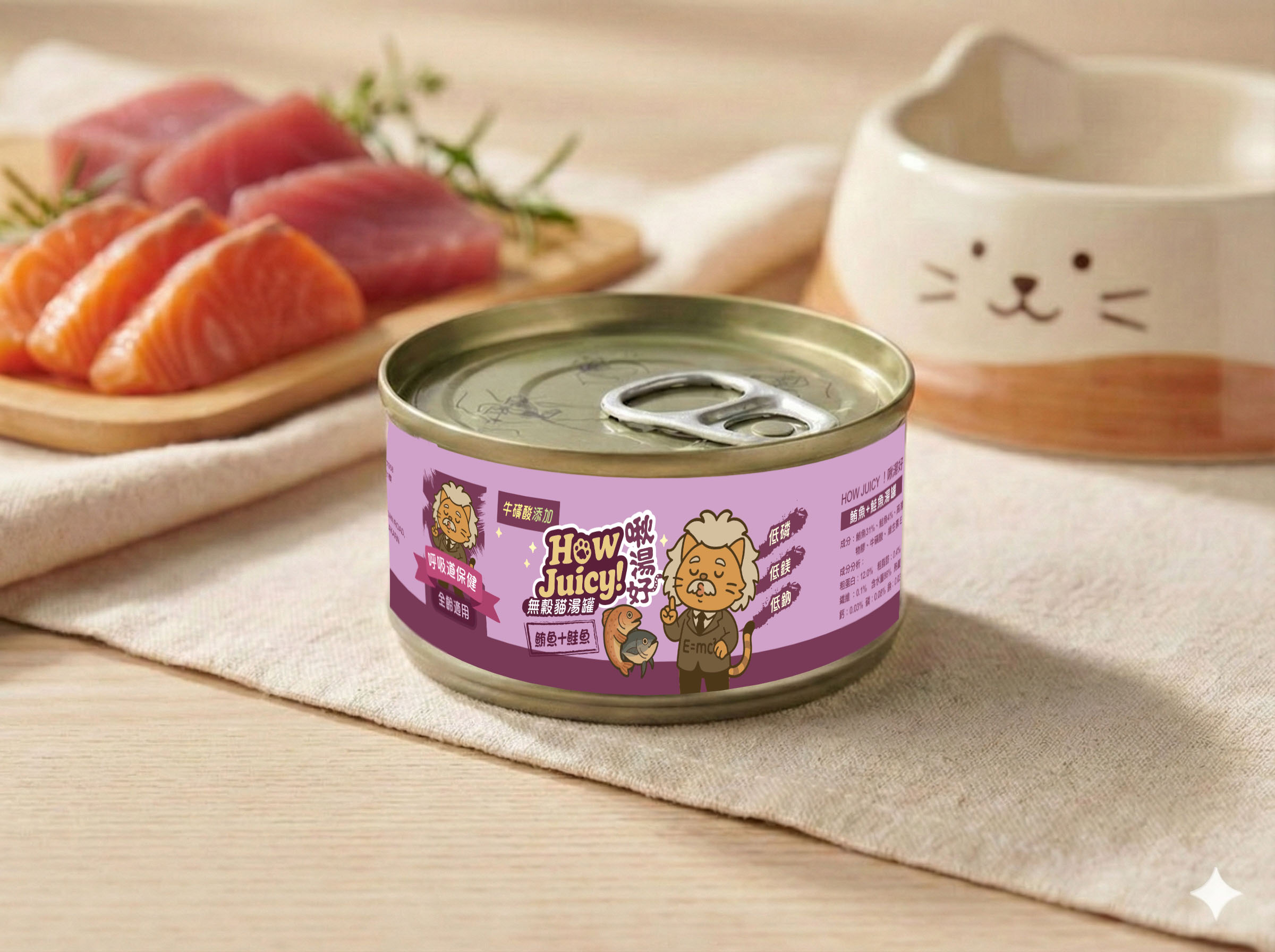 HOW JUICY 啾湯好|鮪鮪魚+鮭魚湯罐 (呼吸道保健)80g |極致補水 高適口性|貓咪補水神器