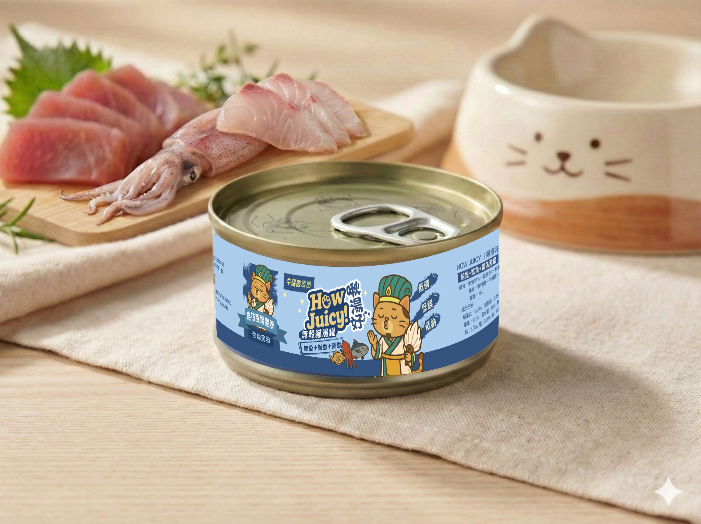 HOW JUICY 啾湯好|鮪魚+魷魚+鯛魚湯罐 (維持腸胃健康)80g|極致補水 高適口性|貓咪補水神器