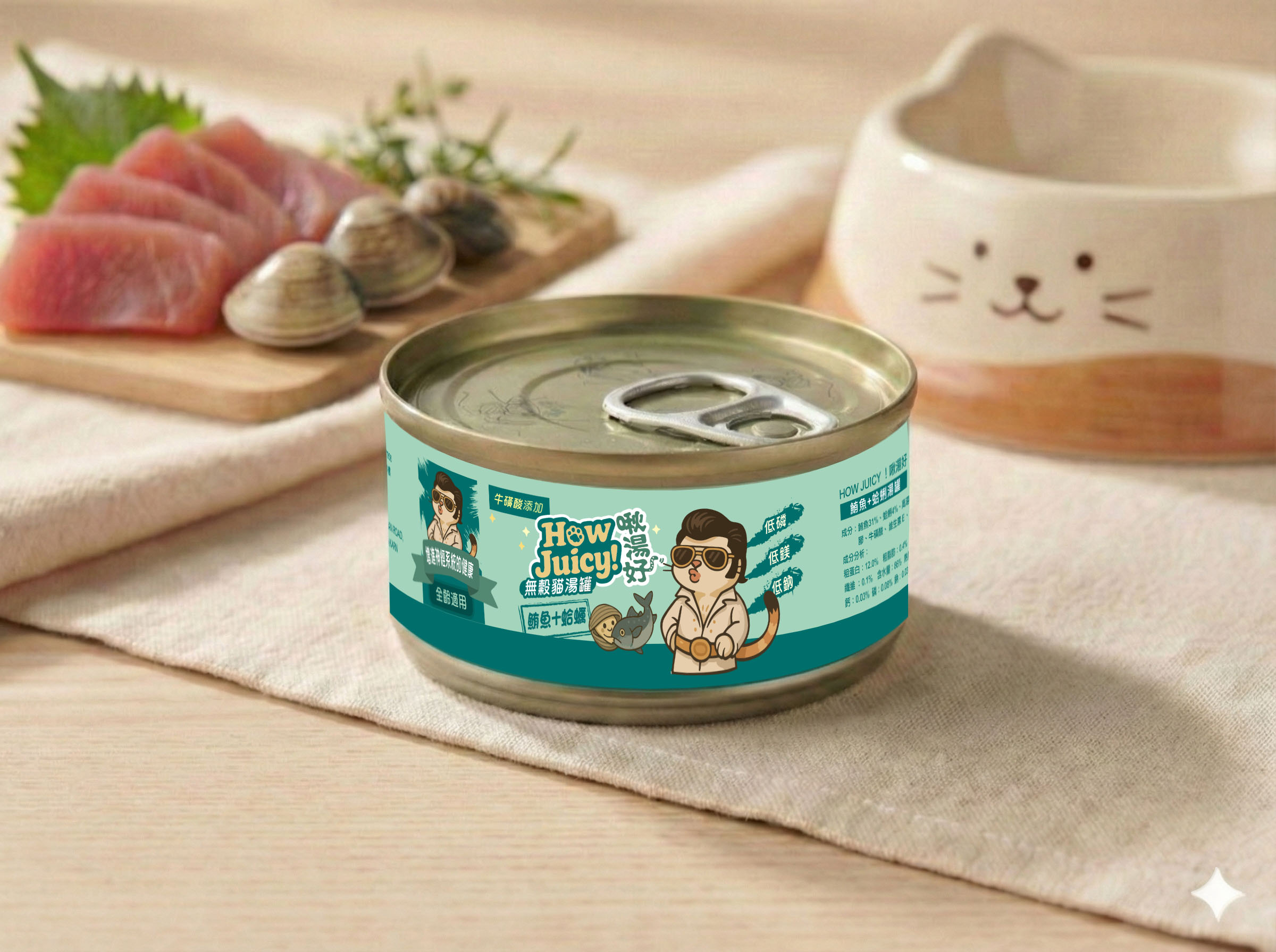 HOW JUICY 啾湯好|鮪魚+蛤蜊湯罐 (神經系統保健) 80g|極致補水 高適口性|貓咪補水神器